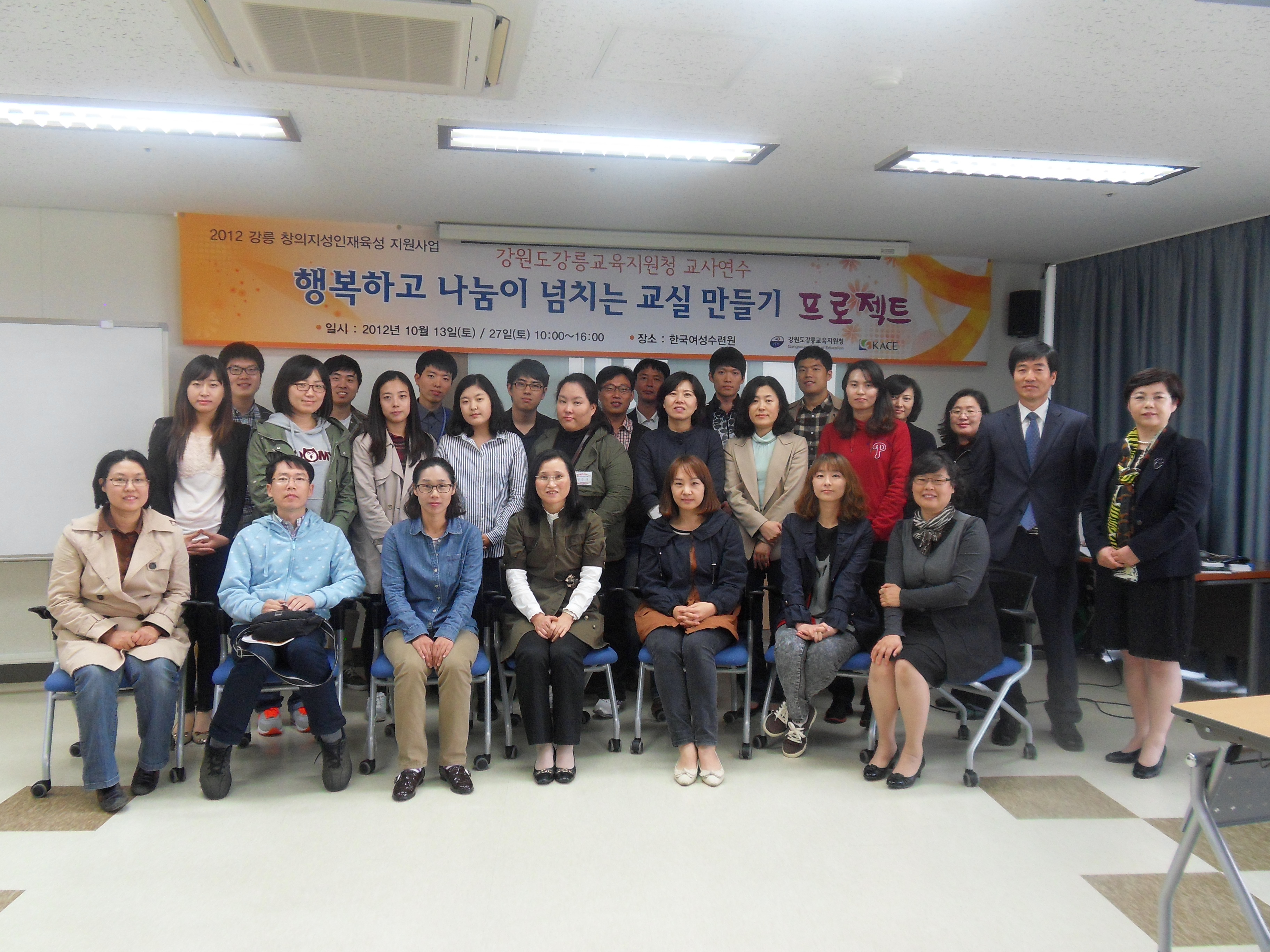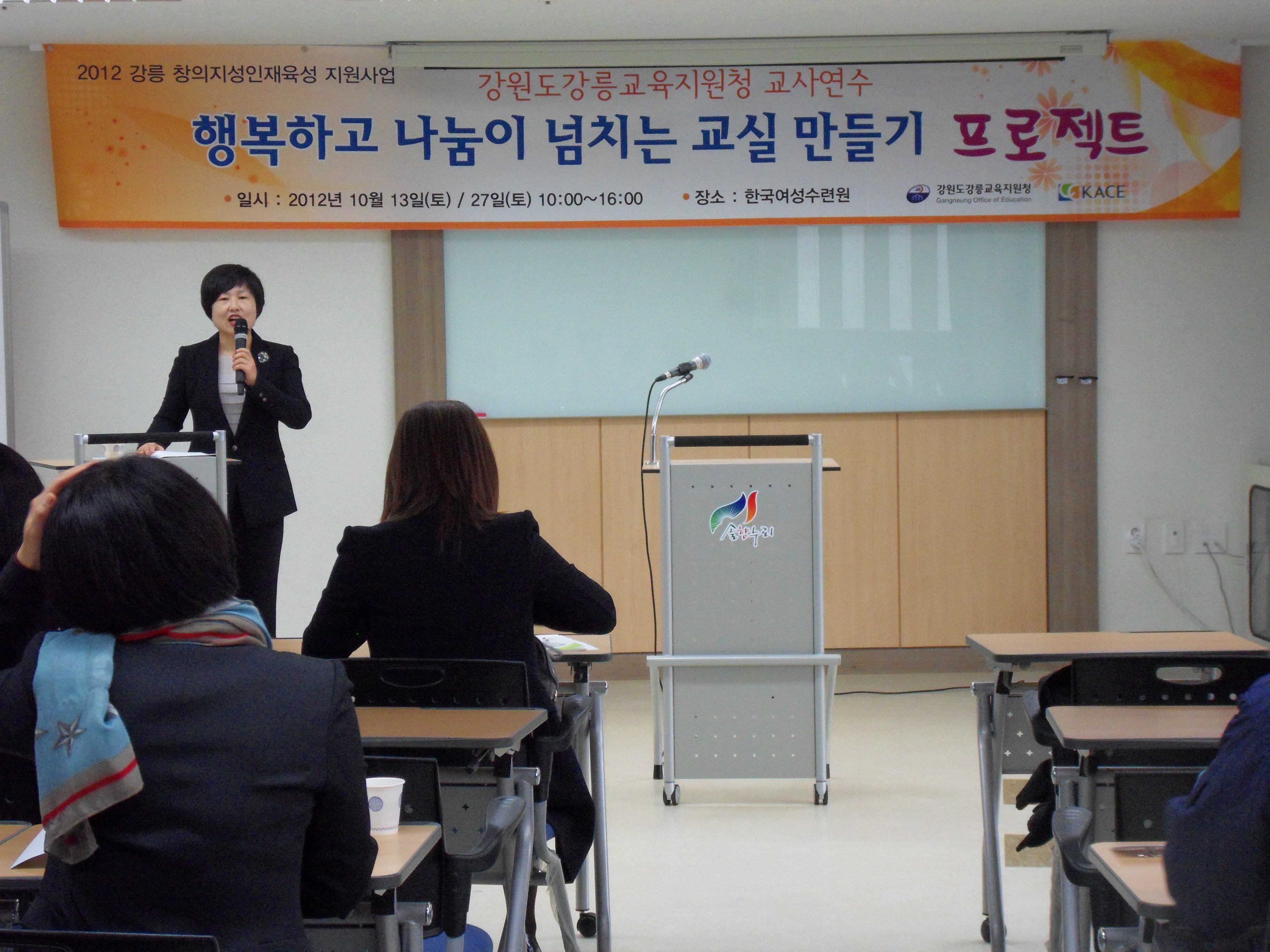 KACE학교리더십센터는 강릉교육지원청과 함께 지난 10월 13일(토), 27일(토) 양일에 걸쳐 초, 중, 고등학교 교사들을 대상으로 '행복하고 나눔이 넘치는 교실 만들기 프로젝트'라는 주제로 교사연수를 진행했다.