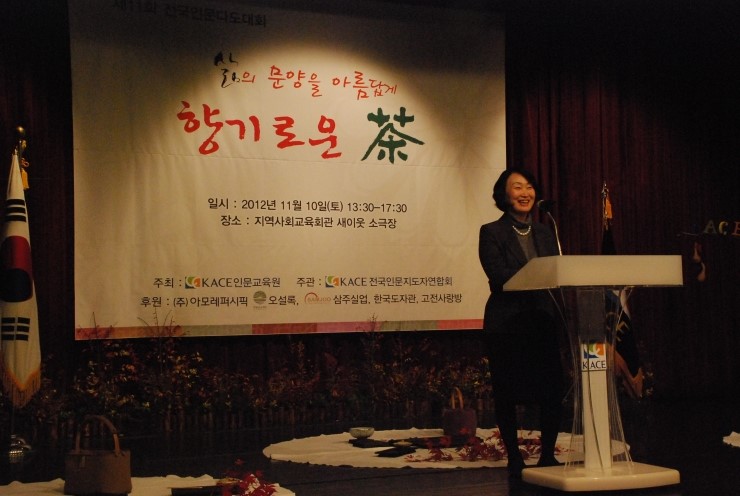 KACE인문교육원은 11월 10일(토) 지역사회교육회관 새이웃 소극장에서 인문다도대회를 열었다. 올해로 11회를 맞는 이번 대회는 '삶의 문양을 아름답게, 향기로운 茶' 라는 주제로 진행되었다. 유치부, 초등부, 중고등부, 단체부 총 52팀이 경합을 벌인 본 대회 외에도 문현차회에서 준비한 '존중하는 접빈 말차' 행사와 한국무용 공연 등이 함께 꾸며져 더욱 풍성한 행사가 되었다. 이번 대회가 참가자간 단합을 통한 네트워크 강화 및 차 문화 확산의 계기가 되길 바란다.