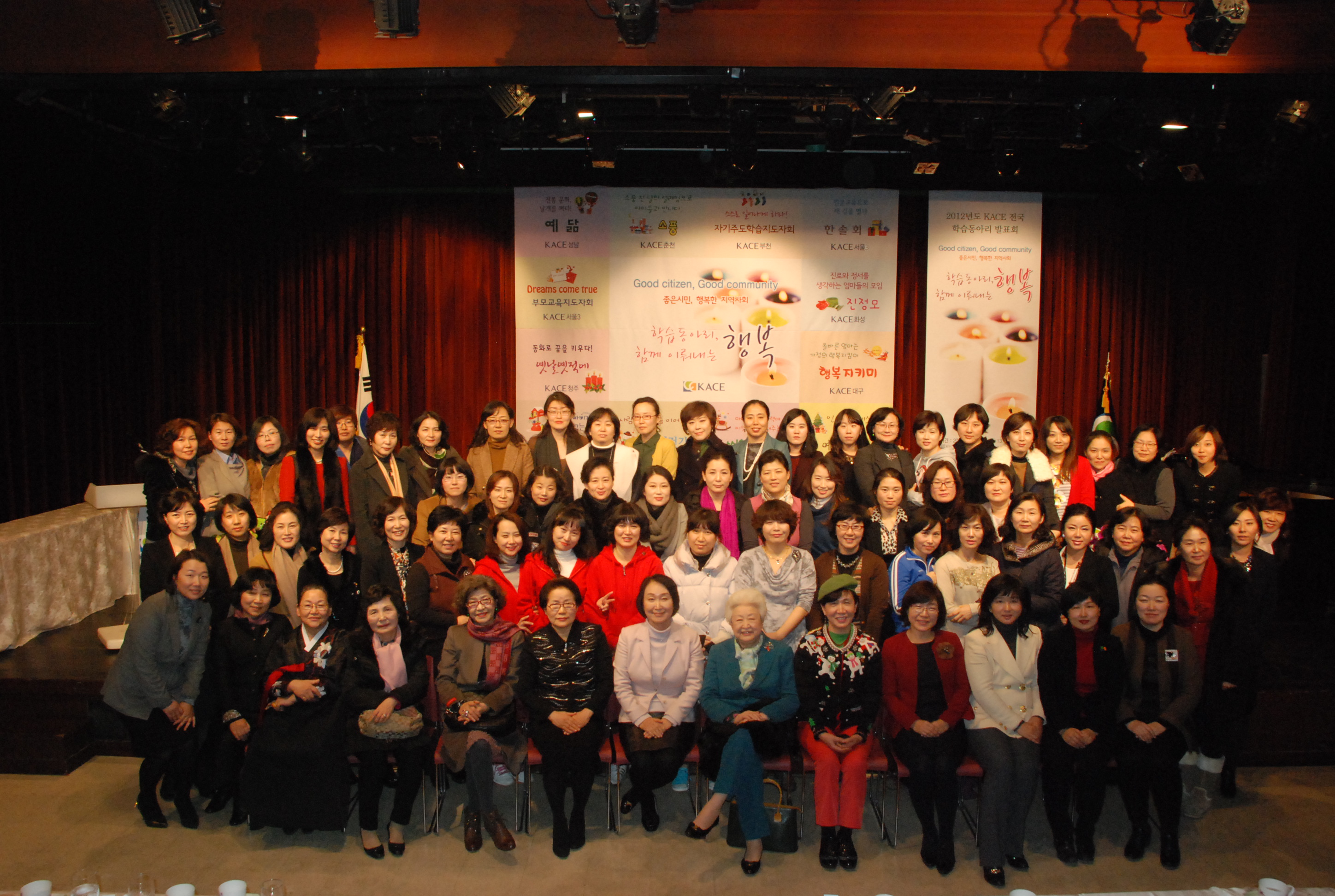 KACE(회장 차광은는 2012년도 KACE 전국 학습동아리 발표회가 지역사회교육회관 새이웃 소극장에서 지난 12월 20일(목) 열렸다. 회관 1층에서는 학습동아리의 활동을 보여주는 전시회도 함께 열렸다.이날 발표회는 성악가 하영선님이 진행하였으며, 총 12개 팀이 학습동아리를 통해 변화한 일상의 기쁨을 나누는 뜻깊은 자리가 되었다. 앞으로도 '좋은 시민, 행복한 지역사회' 사회를 함께 만들어가는 학습 동아리의 성장을 기대해 본다.