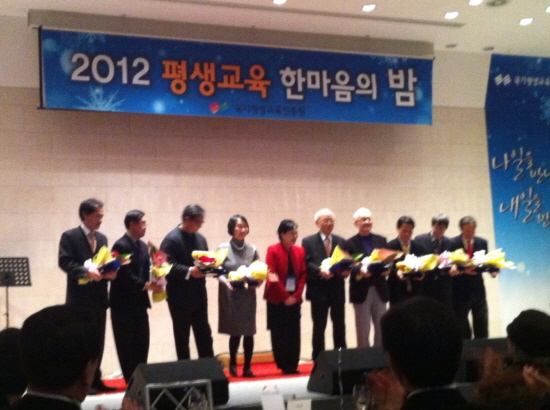KACE(회장 차광은)는 지난 12월 26일(수) 파티오나인에서 열린 2012평생교육연계체제구축사업 성과보고회 '평생교육의 한마음의 밤' 행사에서 국가평생교육진흥원으로부터 감사패를 수여받았다. 이날 행사에는 EBS, 유니세프, 김종서 전 서울대 교수(KACE 2대 회장) 등 작년 한 해 평생교육에 뜻을 펼친 기관 및 개인이 수상했으며 이번 수상을 계기로 KACE는 국가평생교육진흥원과의 네트워킹을 강화하고 '좋은 시민, 행복한 지역사회'를 위한 다양한 사업을 활발하게 펼칠 예정이다.
