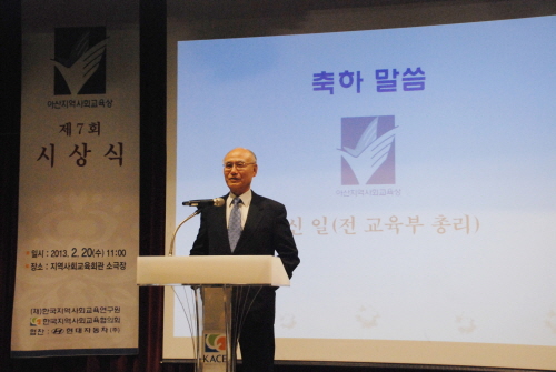 (재)한국지역사회교육연구원은 2월 20일(수) 11시 지역사회교육회관 새이웃 소극장에서 축하객과 관련 인사들이 참석한 가운데 제 7회 아산지역사회교육상 시상식(진행: 김주선 KACE상임이사)을 개최하고 수상자에게 상패와 상금을 각 1,000만원을 수여했다.