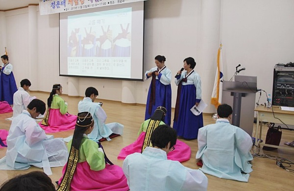 김현숙 원장(KACE구미 인문교육원)과 김미정,서태숙 선생님이 진행한 이 교육은 방석앉기, 한복 바르게 입기, 우리절 실습, 다식만들기, 행다, 마지막으로 금오공대 학생처장님을 모시고 책례로 마무리 하였다.