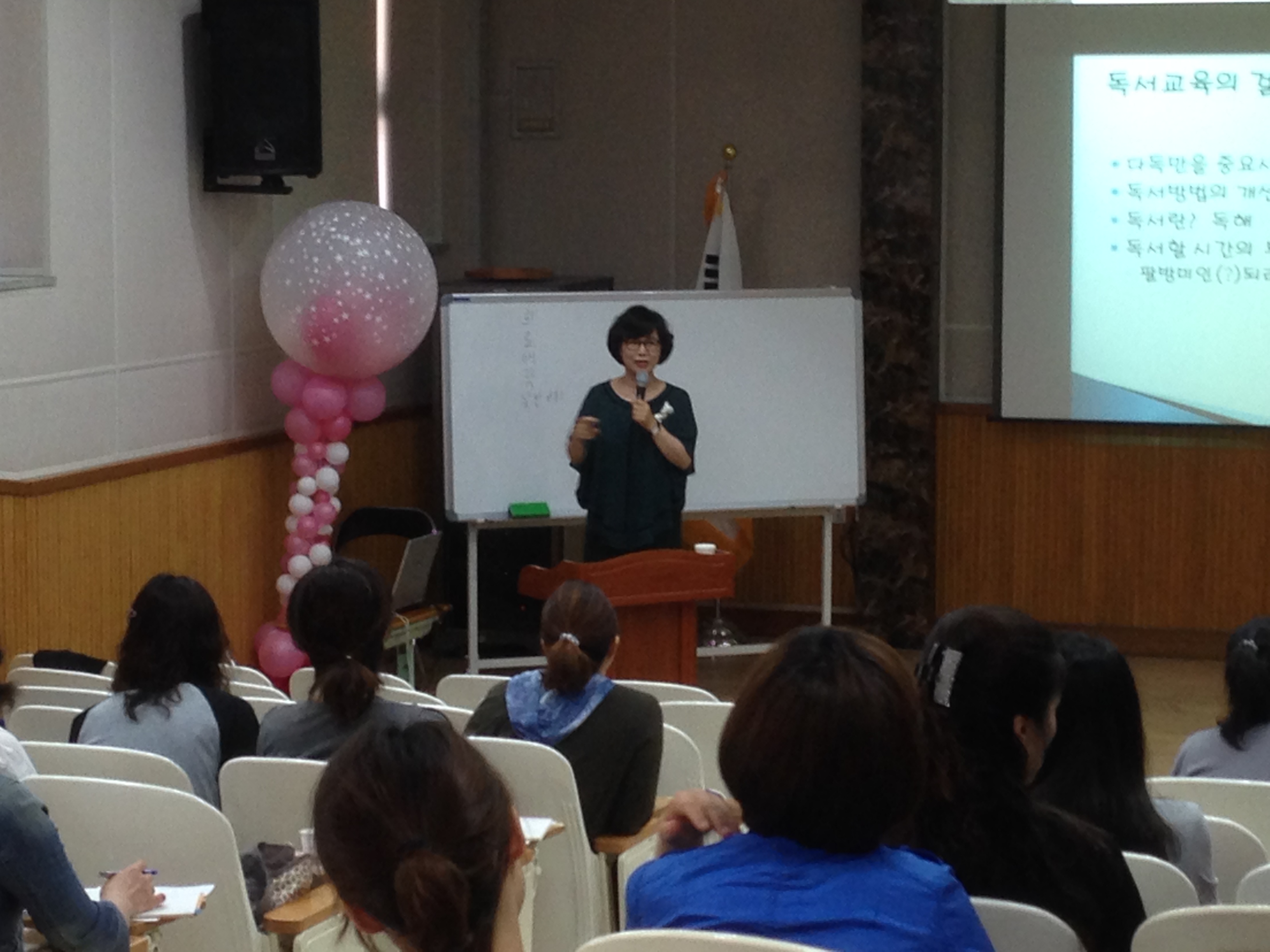 KACE용인은 평생학습관 지원사업으로 진행되는 학부모와 함께하는 자녀의 글쓰기독서 지도과정이 대청초 시청각실에서 5월20일부터 강경희 선생님의 강의로 진행되고 있습니다. 평소 글쓰기 독서 지도에 관심이 많으셨던 부모님들이 모여 우리아이의 글쓰기 독서 지도를 어떻게 해야하는지, 아이들의 성장시기에 따라 어떤 책을 선택하는것이 좋은지 등 다양한 교육을 진행합니다. 이 기본과정이 끝나면 독서지도자 과정으로 연계될 예정입니다.