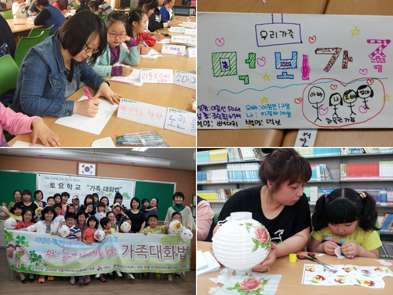 KACE시흥은 5월 17일(토) 10시 군서초등학교, 나무뜰어린이집 등 29가족 47명이 참석한 가정과 사회가 함께하는 토요학교(가사토) 프로그램 “우리 동네 이야기 가족대화법” 마지막 수업이 있었습니다다. 이 과정은 우리 동네 이야기를 주제로 엄마와 아이가 함께 의사소통 방법을 배우는 과정으로 일상대화의 분석, 대화의 기본태도 익히기, 효과적인 대화방법 등을 알아보는 교육내용으로 구성 되었으며 오늘은 가족의 소망을 담아 등불을 만들고 소원을 함께 빌어보는 시간을 가졌습니다.
