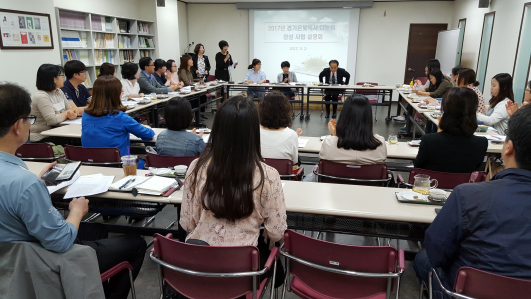 KACE 이용경 본부장의 사회로 진행된 이 날 설명회는 KACE안양과천 이현근 회장의 인사말씀과 이현순 사무국장의 브리핑, 질의응답의 일정으로 경기도 도서관정책과 팀장과 담당주무관이 참석하였고, KACE경기 11개 지역 실무자들과 경기도내 11개 도서관 담당자들이 참석하였다.