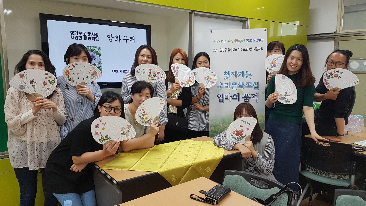 KACE서울2(회장 이창형)는 "2019 양천구 평생학습우수프로그램 찾아가는 우리문화교실-엄마의 품격"을 서울영도초등학교와 서울정목초등학교에서 각5회차씩 진행하였습니다.