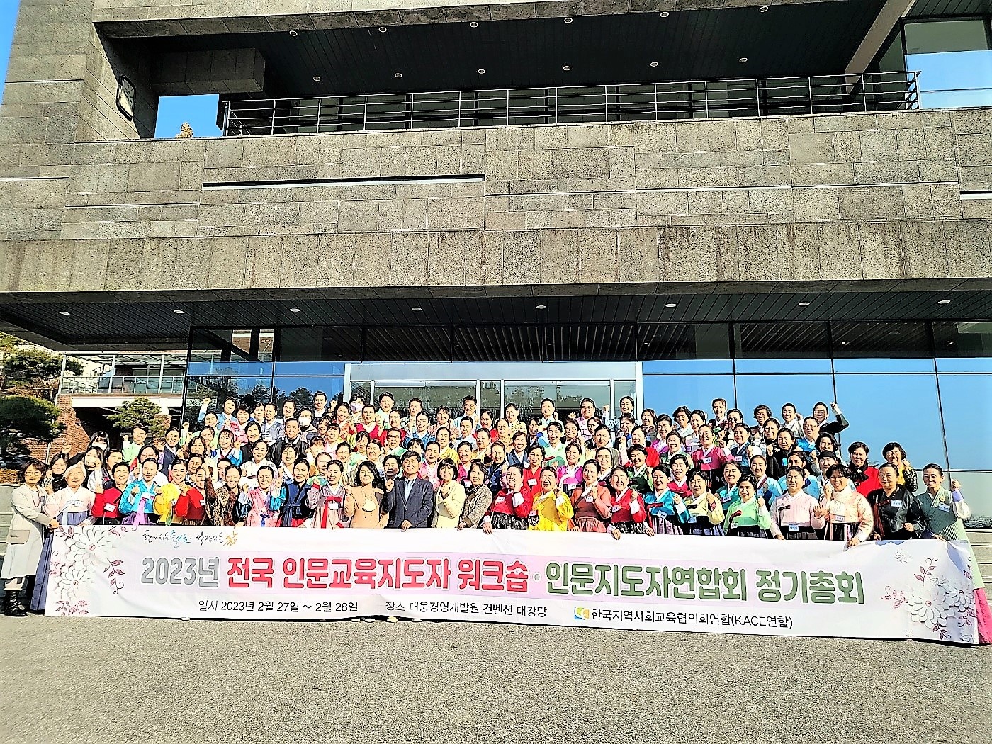 한국지역사회교육협의회연합(KACE연합)은 지난 2월 27-28일 용인 대웅인재개발원에서 “인생의 맛”이라는 주제로 2023년도 전국 인문교육지도자 워크숍 및 인문지도자연합회 정기총회을 실시하였습니다.