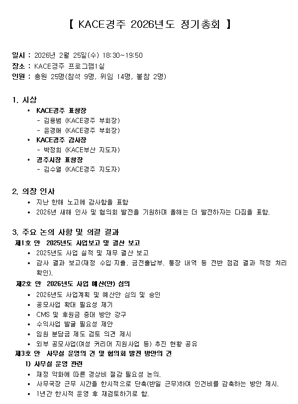 KACE경주 2026년도 정기총회 개최 결과 안내