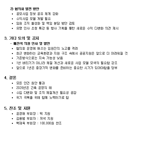 이번 총회에서 논의된 내용을 바탕으로 2026년에는 더욱 내실 있는 운영과 새로운 도약을 위해 노력해 나가겠습니다.