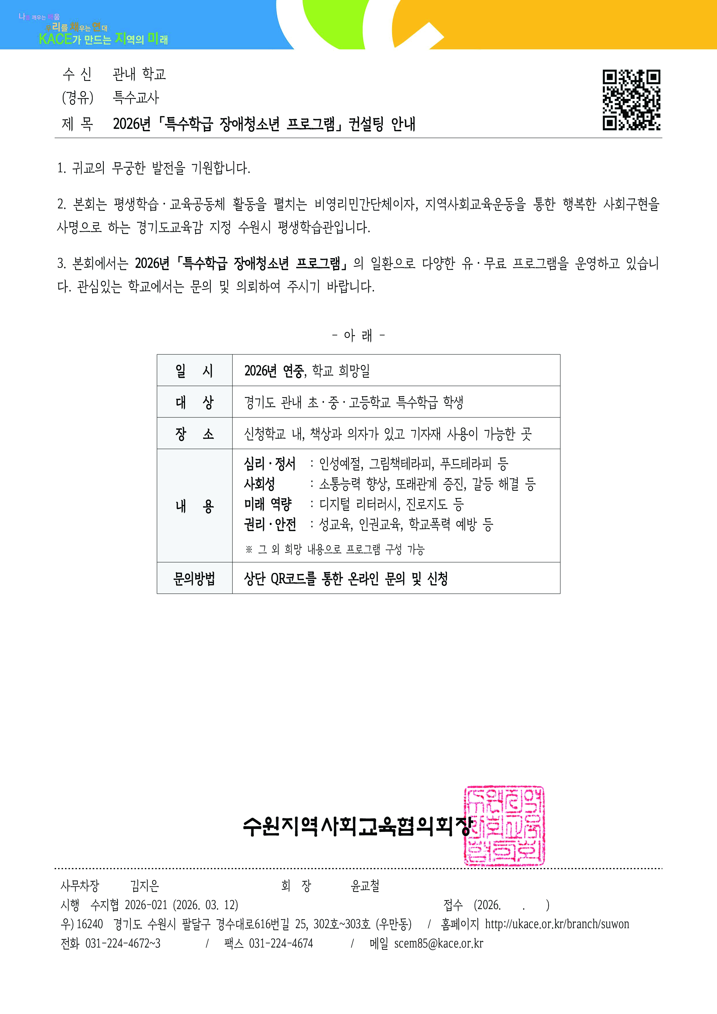 [안내] 특수학급 프로그램