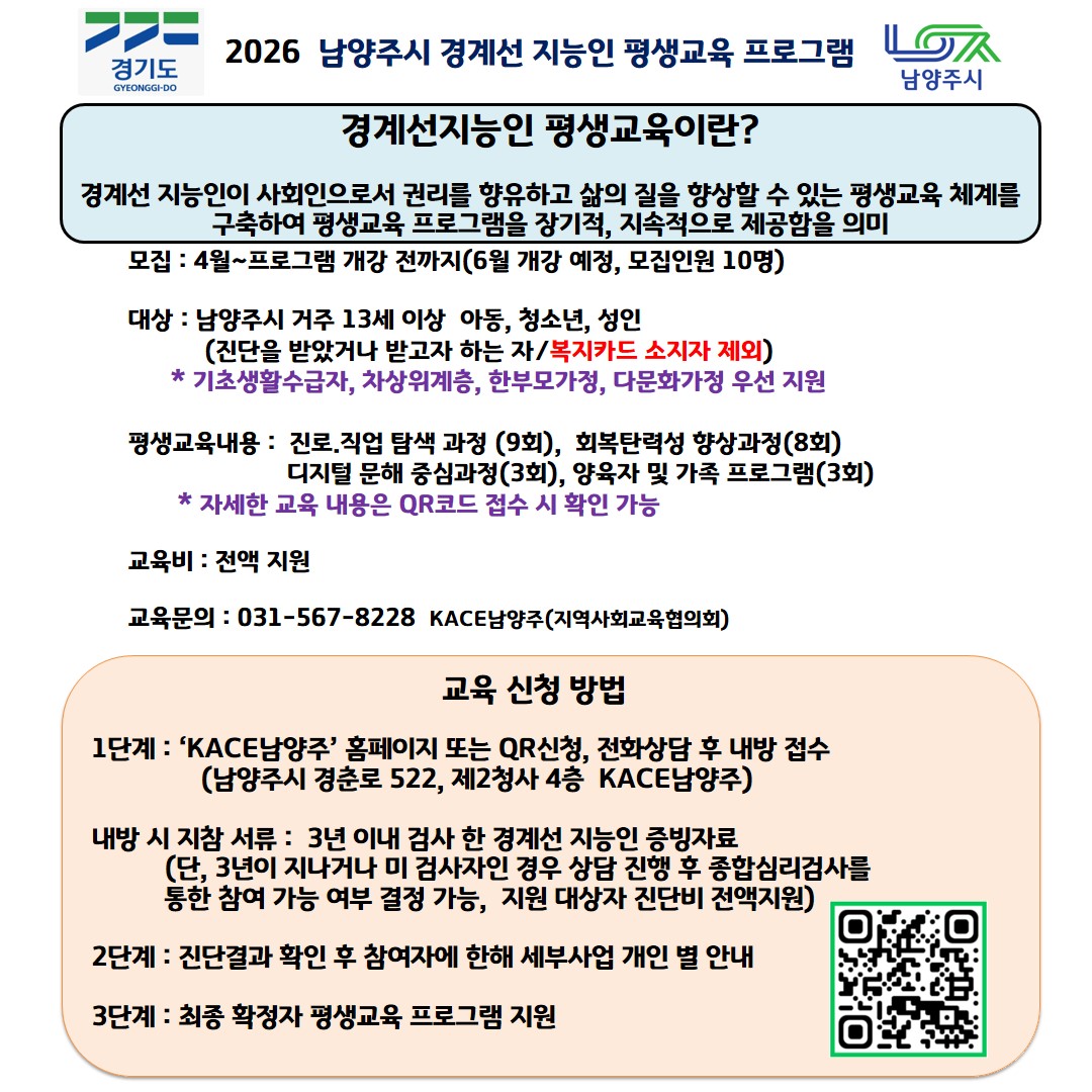 2026 경계선지능인 평생교육 지원자 모집 안내