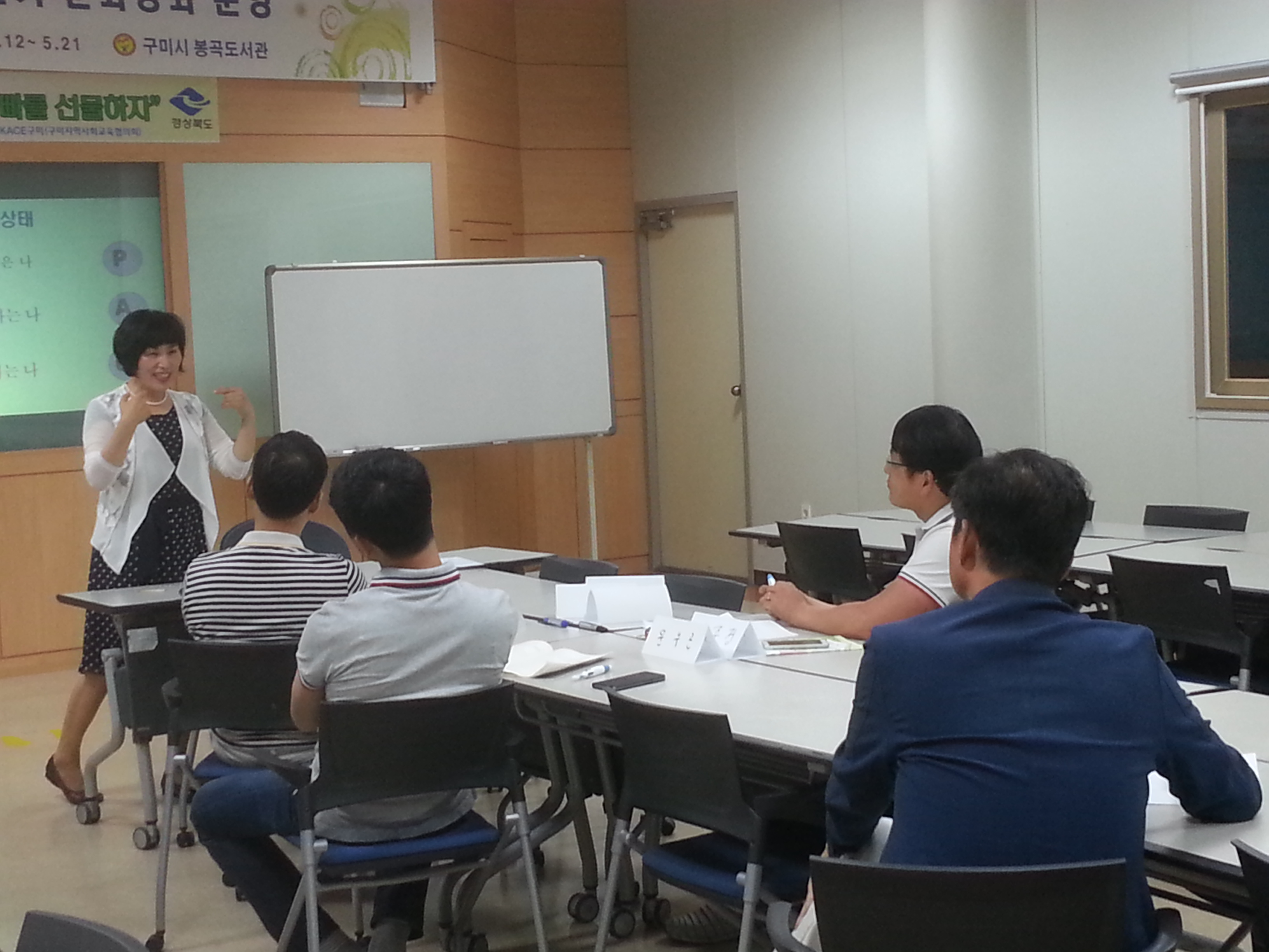 경상북도 평생교육지원청의 지원을 받아 아버지다움 찾기-아빠를 선물하자!] 봉곡 도서관에서 매주 목요일 저녁 7:30-9:00 .주1회 총12회 동안 진정한 부자 아빠되기. 아버지로서의 나 이해하기. 마음을 열고 대화하는 아버지. 자신감을 심어주는 아버지. 가족이 함께 짓는 러브하우스 등의 내용으로월6월 2일 개강하여 8월 18일 완료하였습니다.