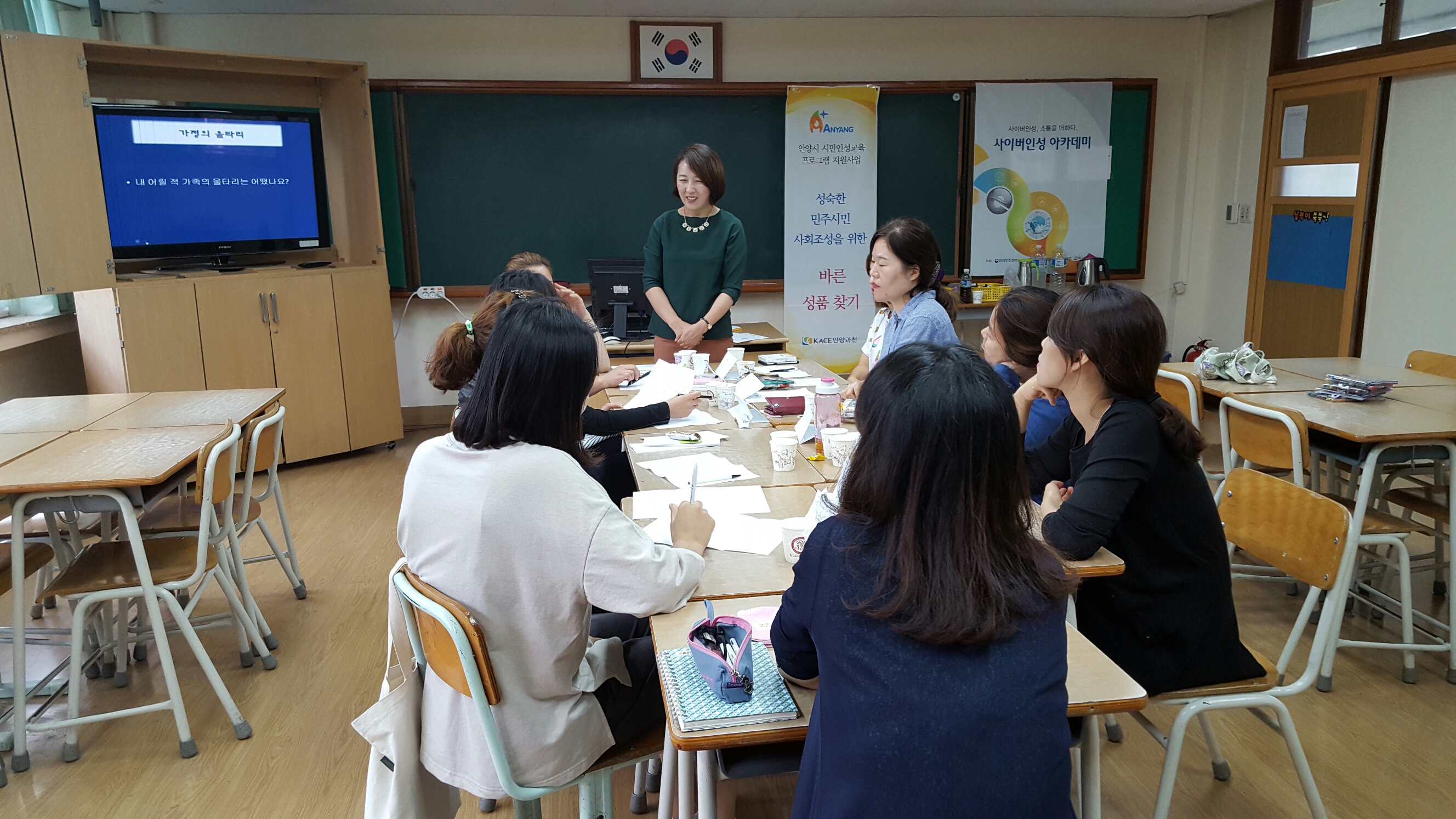 8월 30일부터 9월 27일까지 신안초등학교 학부모를 대상으로 시민인성 수업이 진행되었다. 2016안양시 시민인성교육 프로그램 지원사업 중 하나로, 이 교육과정을 통해 내면의 가치 있는 언어를 찾아 바른 인성을 형성하고 성숙한 민주시민으로 성장할 것으로 기대된다.