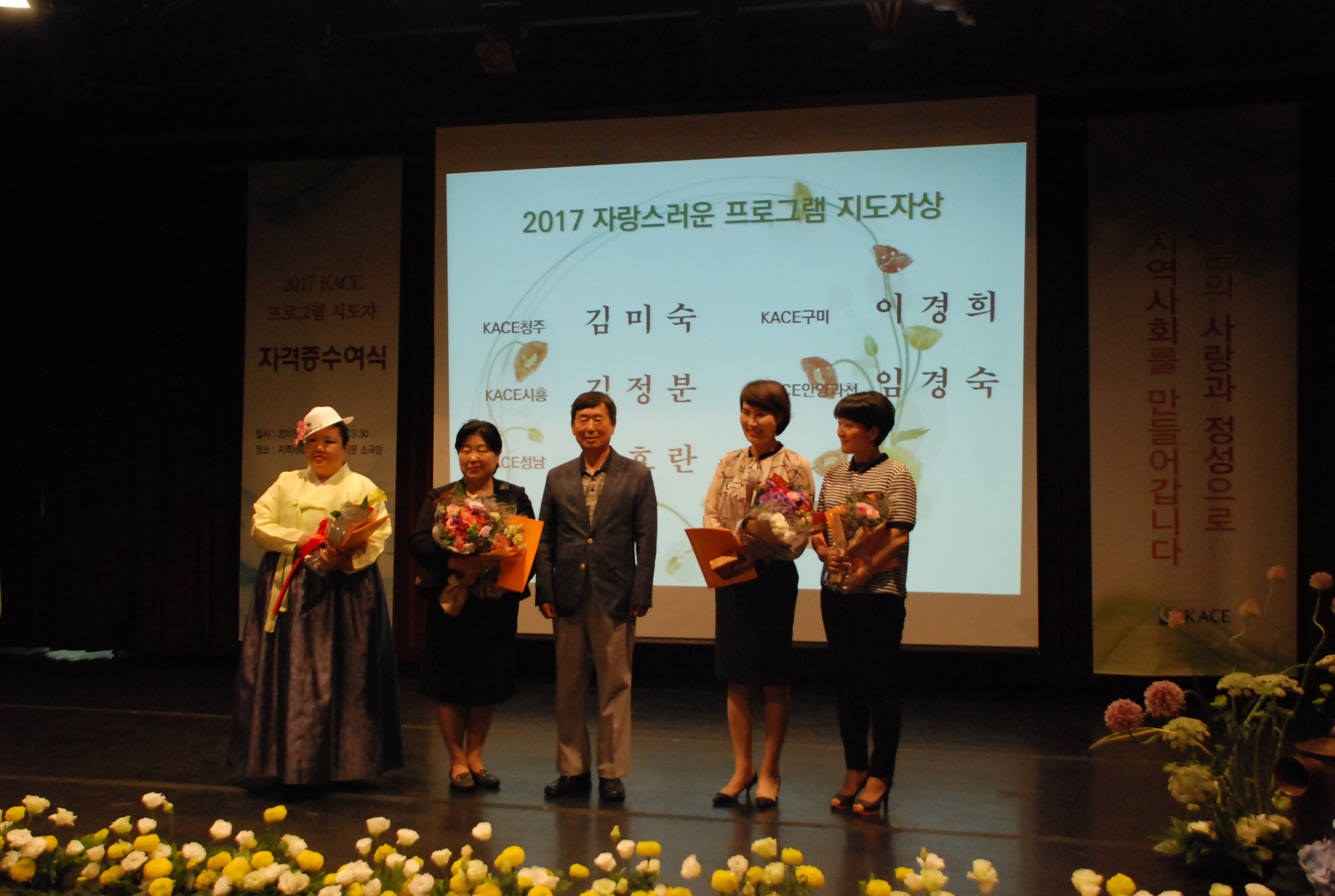 KACE(회장 강전항)는 6월 22일(목) 지역사회교육회관 새이웃 소극장에서 2017 전국 프로그램지도자 자격증 수여식을 실시하였다.