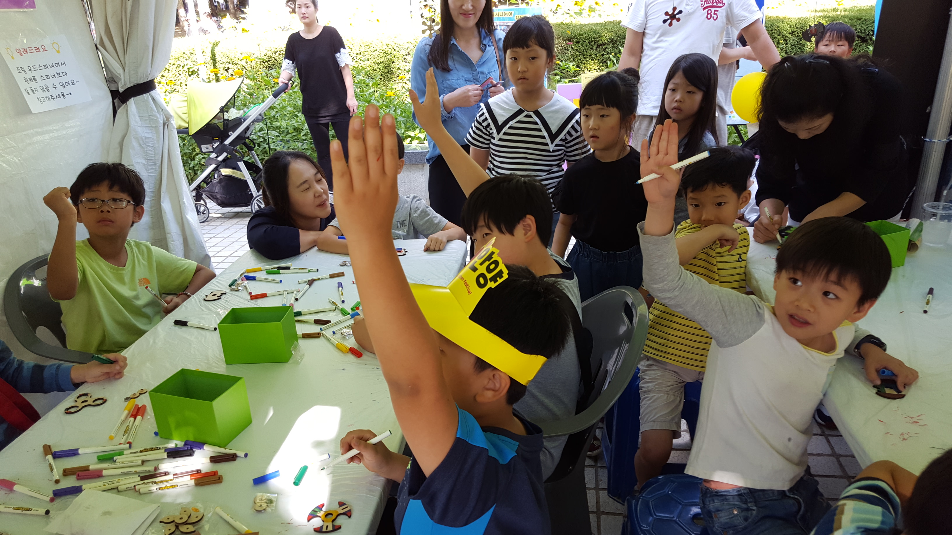 각양각색의 예쁜 색을 칠하여 완성하는 피젯스피너 만들기 체험은 요즘 어린이들에게 인기만점인 놀이기구로 성황리에 진행되었다.