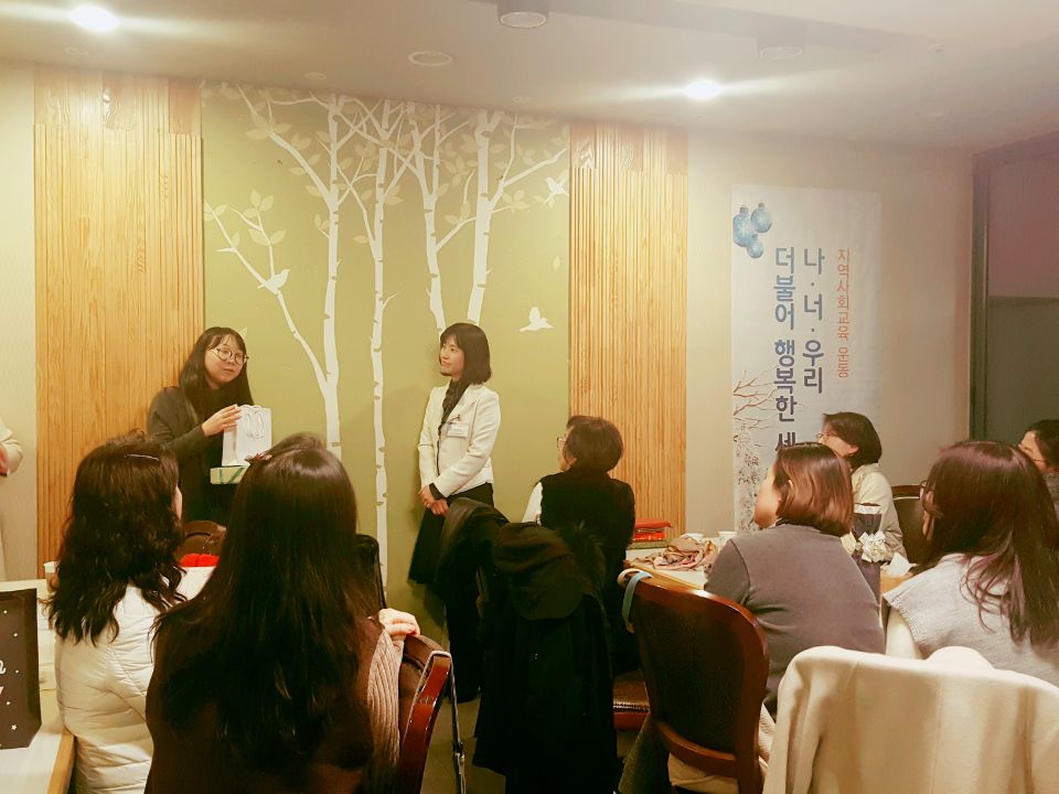 이번 회원의 날 사회는 부모교육지도자회 회장인 김국화선생님이 진행하였고 드레스코드 '화이트'로 한껏 멋을 낸 원석연, 이해경 인문교육지도자와 이덕현, 한용자 부모교육지도자가 선택되어 맵시를 뽑내어 보기도 하였다. 연말을 맞아 회원들이 준비한 선물을 커플매칭으로 서로 나누며 선물의 의미와 감사의 말들을 전했다.