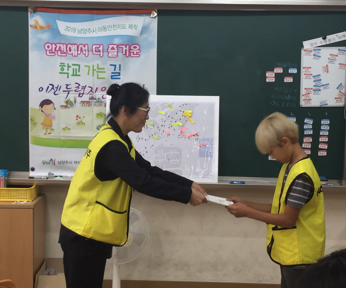 2017년에 이어 올해도 남양주시 초등학교 대상으로 아동안전지도제작을 9월 5일 주곡초를 시작으로 개강했습니다. 이끔이, 지도담당, 스티커 담당, 서기, 포스트잇담당, 길안내등 각 역할을 수행한 학생들은 활동 후 또래 안전 지킴으로 KACE 수료증을 받았습니다.
