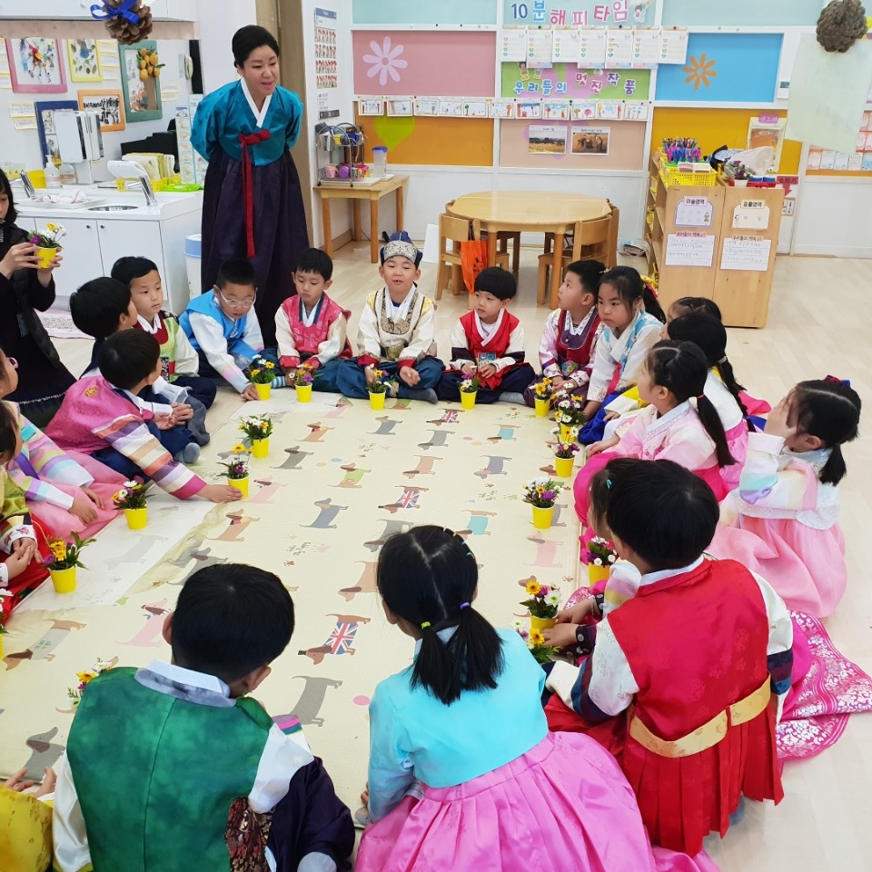 KACE구리(회장 장향숙)는 2018년 10월 19일~10월 30일(화,금) 써니힐 유치원 아이들을 대상으로 예절수업을 진행하였다. 6세반은 한복명칭알아보기, 다식만들기를 실시하였으며, 7세반은 공수예절, ‘행복한 우리가족’을 표현하는 다화만들기를 진행하였다. 본 수업은 2014년부터 매년 진행해 왔으며, KACE 인문교육원 지도자의 노고가 많았다. 2018년에는 황음미지도자가 진행하고 있으며, 공수예절을 배우고 다화수업을 통해 옛 사람들의 모습을 살펴보는 계기가 될 것이다.