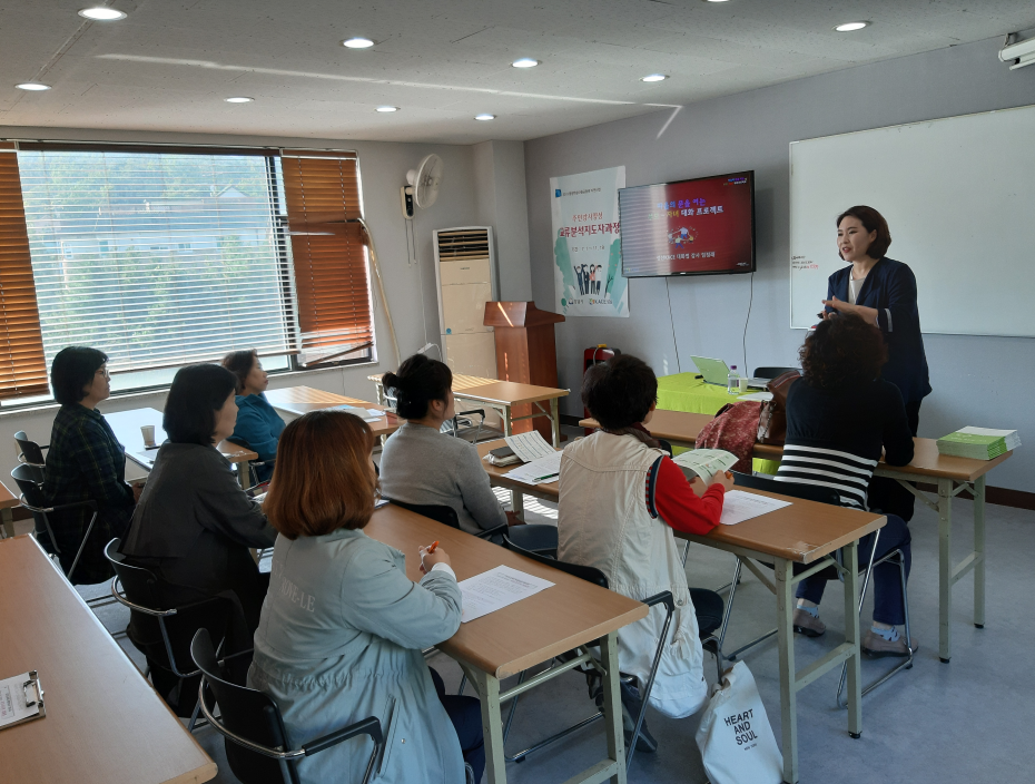 자녀의 인성함양을 위한 부모교육을 진행하고 있다.