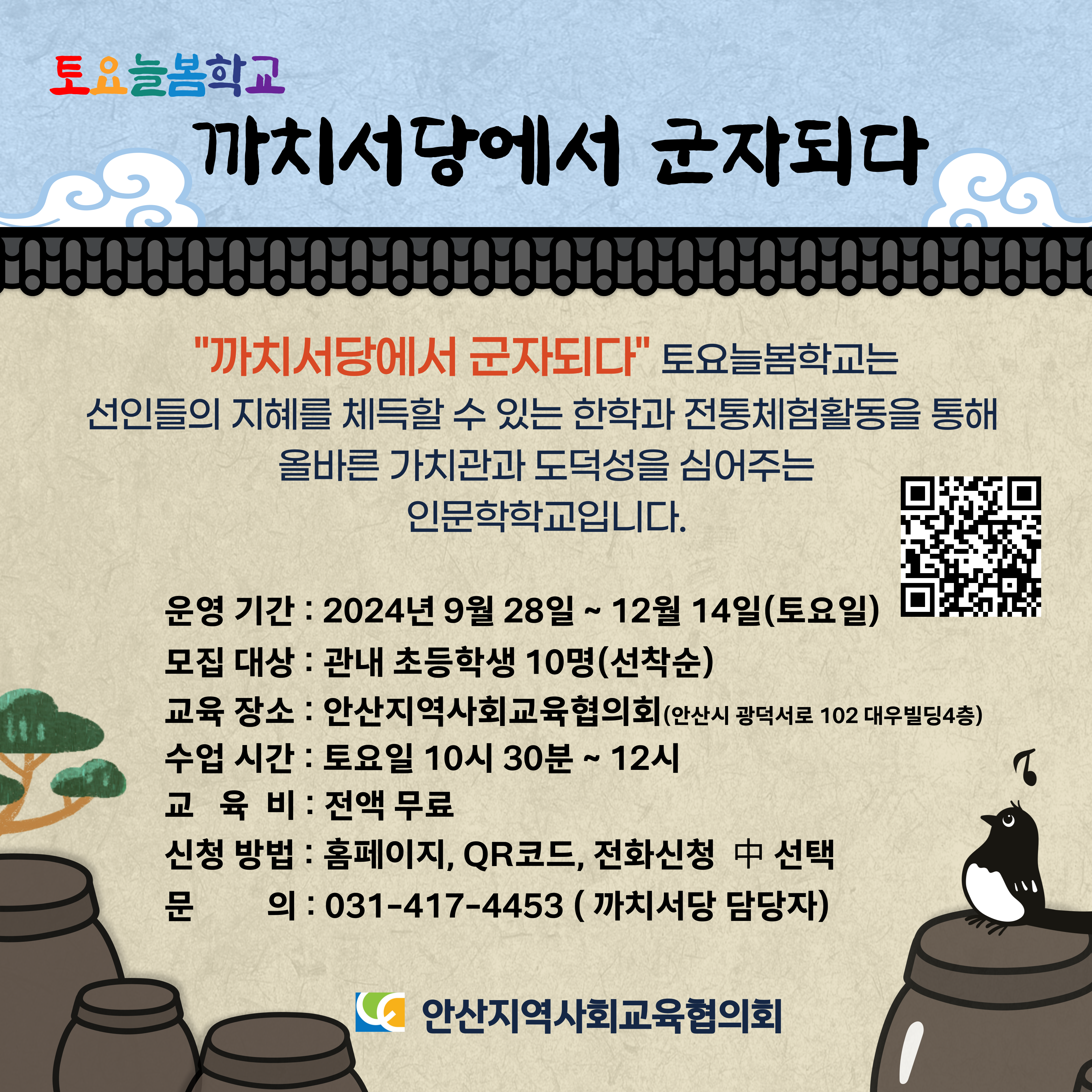 토요늘봄학교 [까치서당에서 군자되다] 군자 모집 안내
